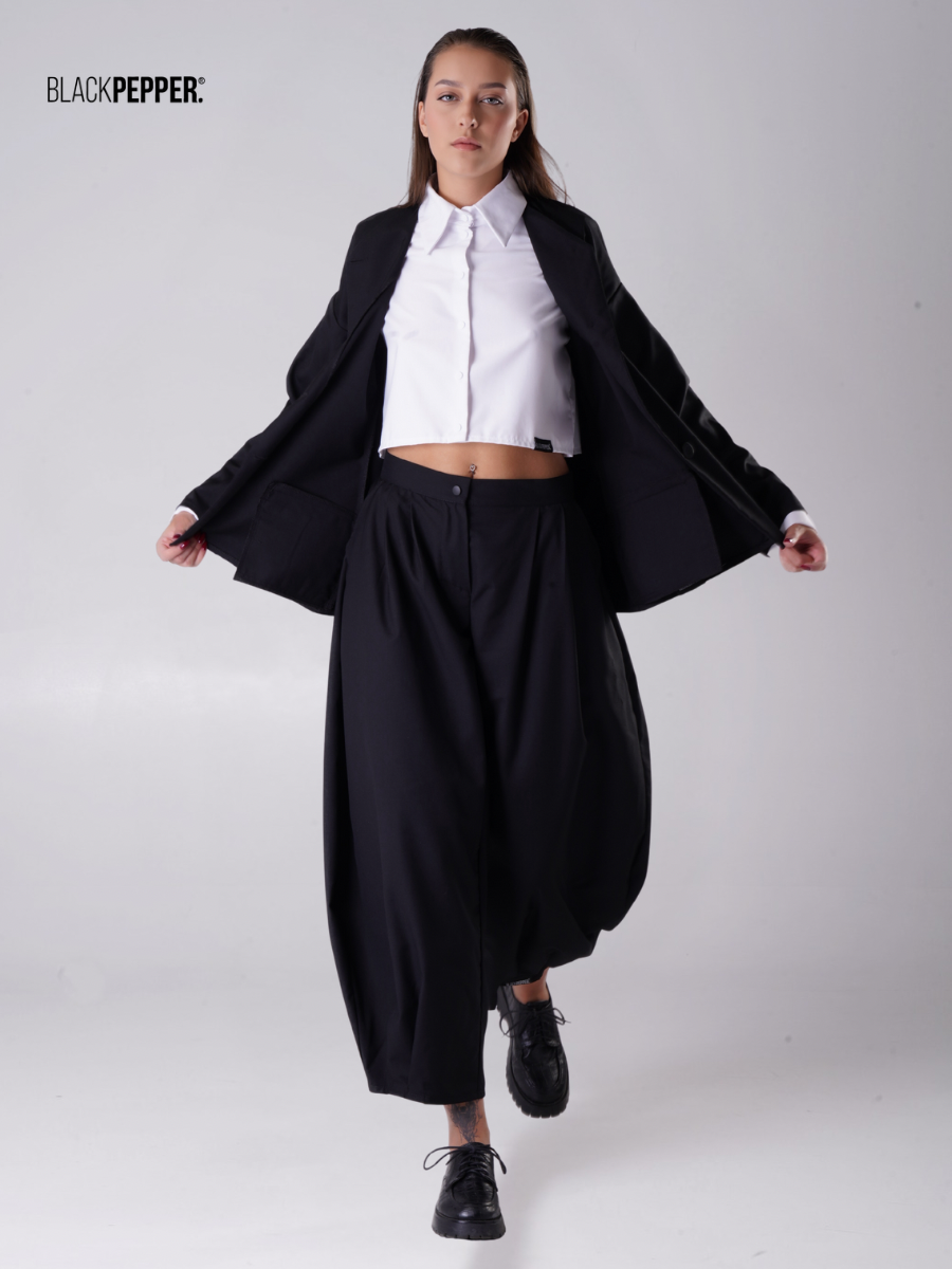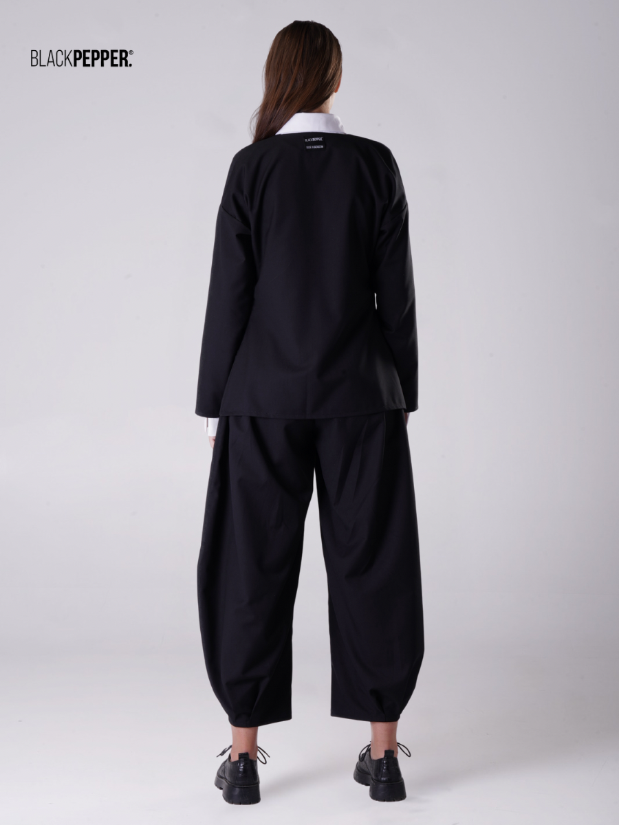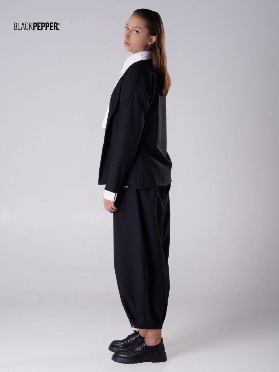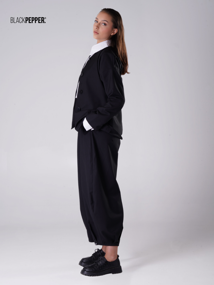 MUGEN Construct ist ein stilvolles und vielseitiges Set, bestehend aus einer Jacke mit geradem Schnitt und locker geschnittenen Hosen. Mit seiner modernen Silhouette und dem bequemen Sitz eignet sich dieses Outfit sowohl für den Alltag als auch für besondere Anlässe.