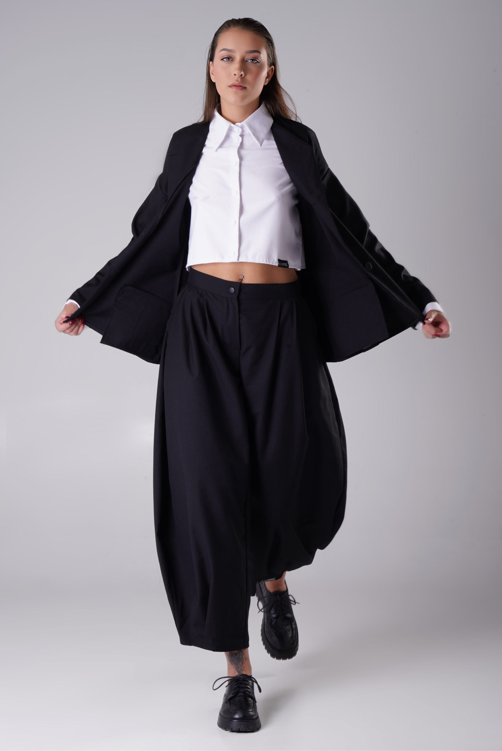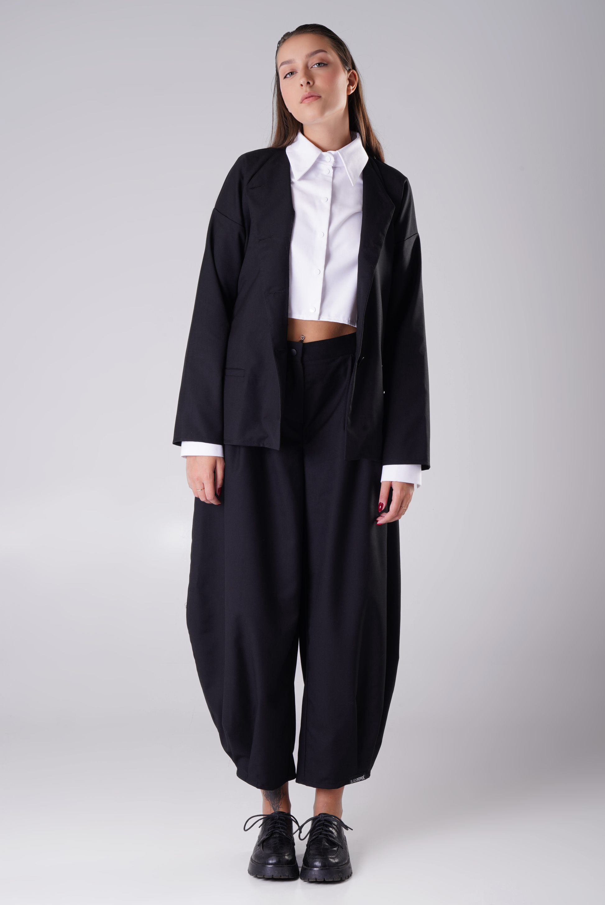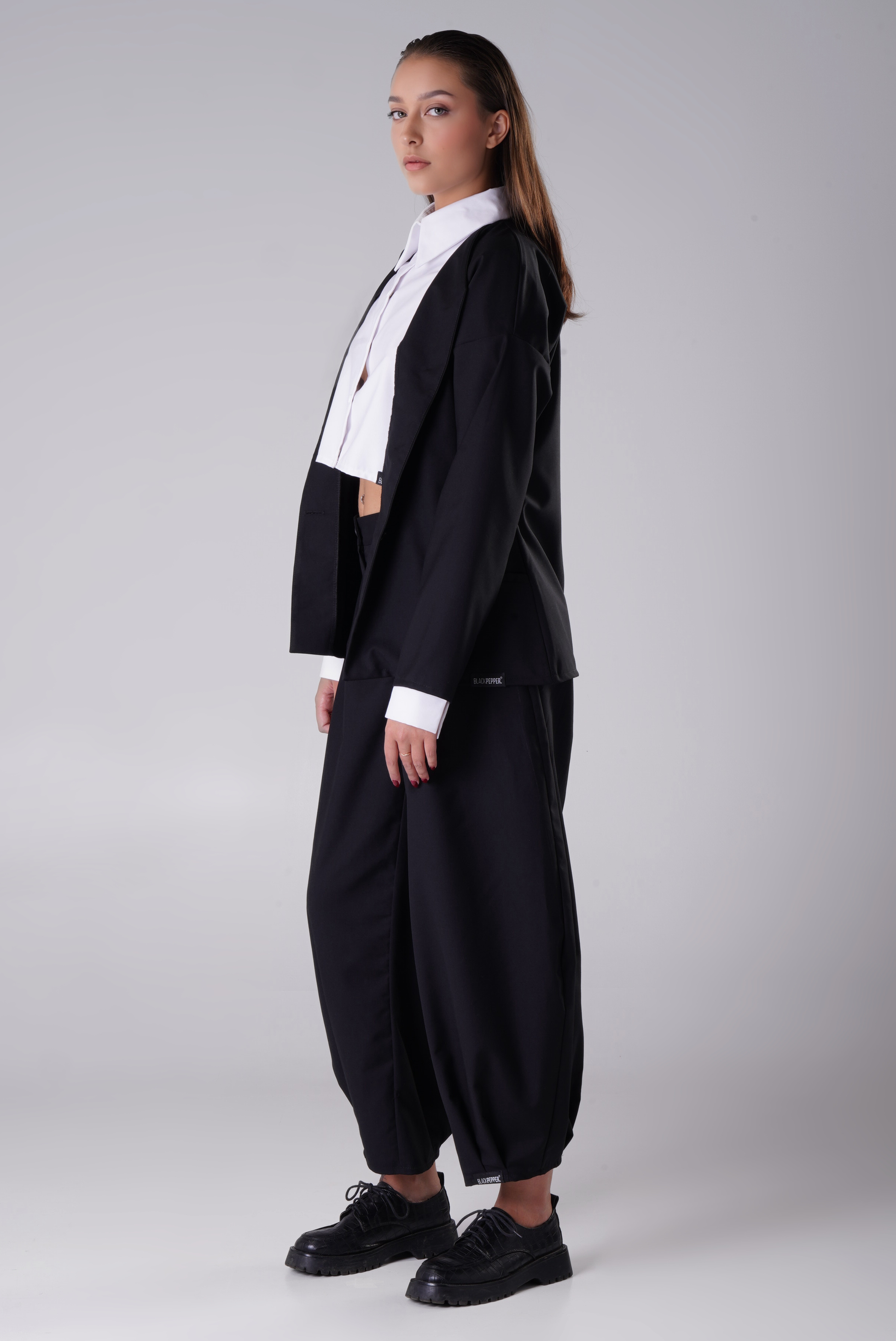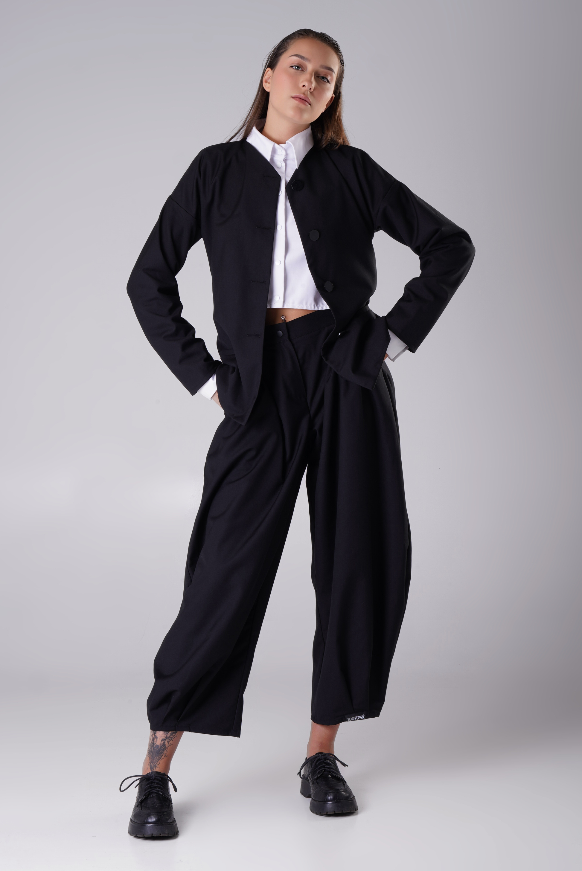 MUGEN Construct is a stylish and versatile set featuring a straight-cut jacket and relaxed-fit trousers. With its modern silhouette and comfortable fit, this outfit is perfect for both everyday wear and more elevated occasions.