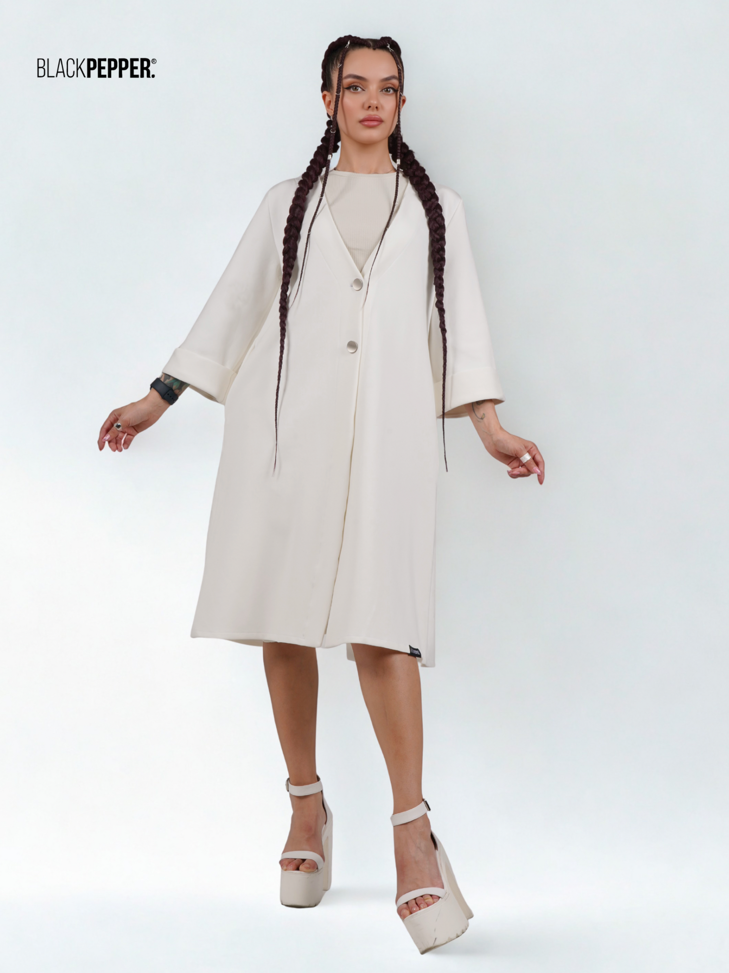 Удлиненный пиджак с высокой шлицей, свободный силуэт, глубокие карманы в швах. Фиксируется на металлические пуговицы. Пиджак выполнен из плотного трикотажа lux (премиальное качество)